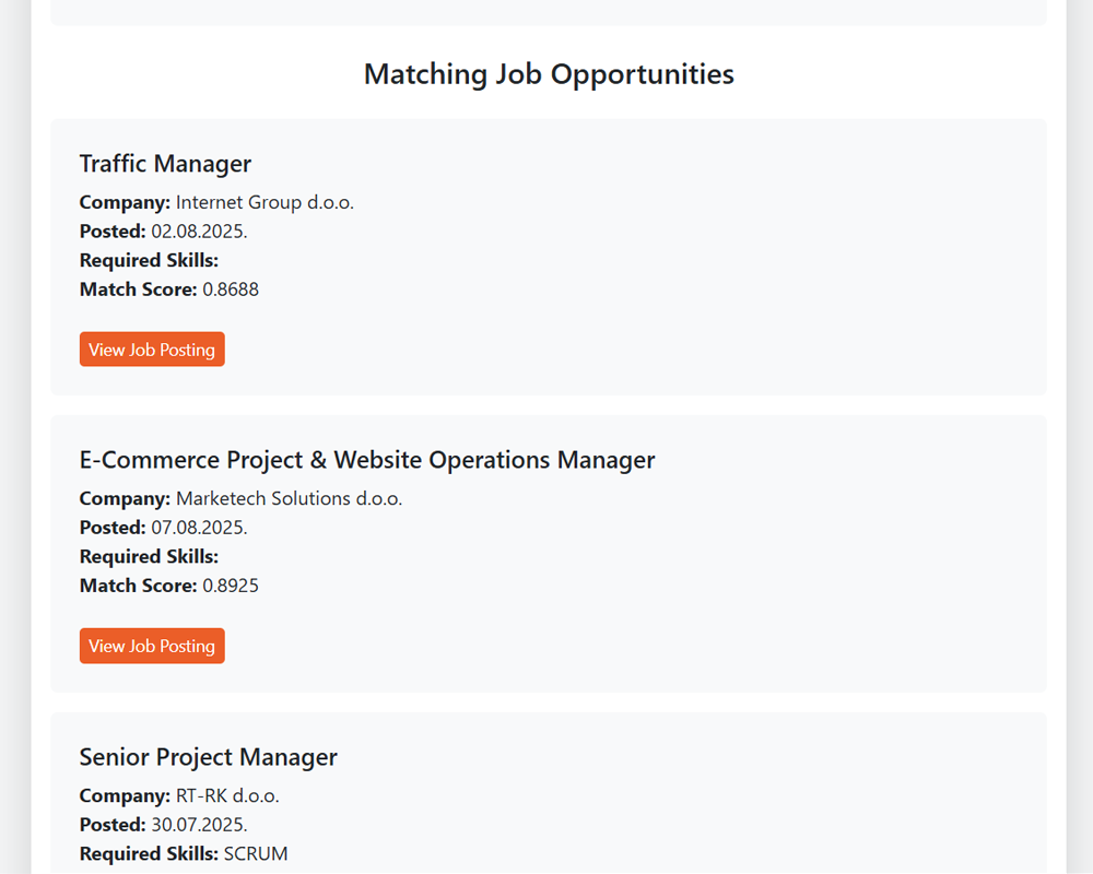 The HR Tool empowers job seekers by intelligently matching their skills and experience with suitable job openings. When a user uploads their CV, our system performs an in-depth analysis of their qualifications, work history, and stated preferences. It then cross-references this information with a constantly updated database of job positions, presenting the most appropriate matches. Users have the flexibility to automatically apply to selected positions, with the system even capable of generating personalized cover letters to accompany their applications, significantly saving time and effort.